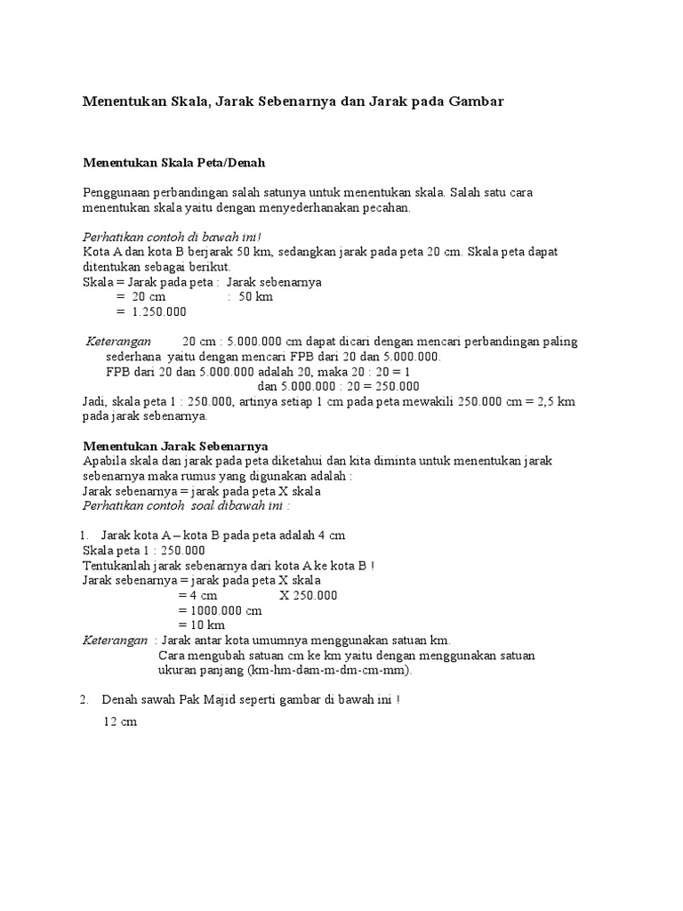 Cara Mencari Skala Jarak Pada Peta Jarak Sebenarnya Contoh Soal