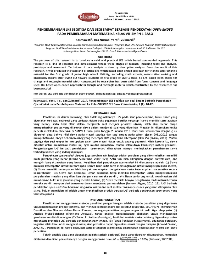 Pdf Pengembangan Soal Soal Open Ended Pada Pokok Bahasan Segitiga