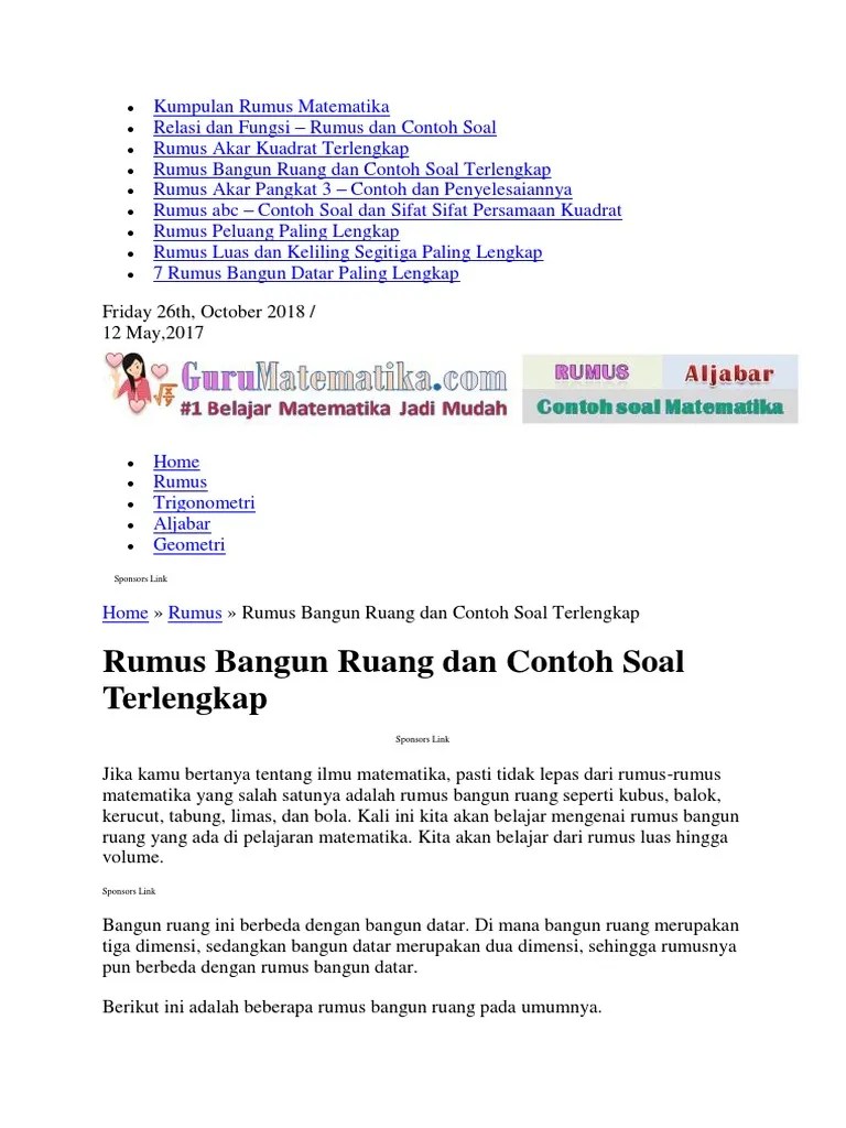 Rumus Dan Contoh Soal Bangun Datar Dan Bangun Ruang Pdf