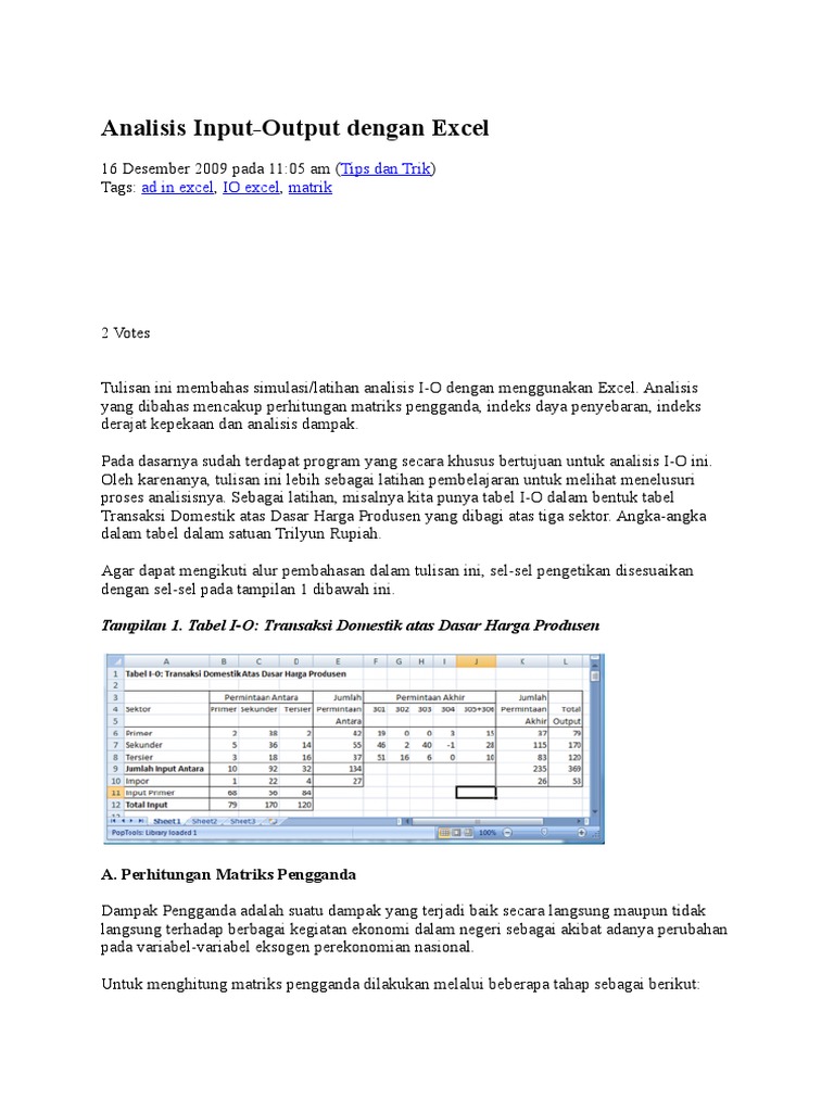 Pdf Analisis Input Output Dengan Microsoft Office Excel
