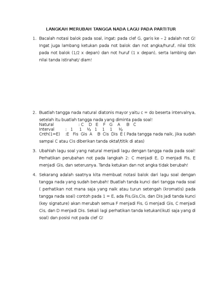 Langkah Merubah Tangga Nada Lagu Pada Partitur