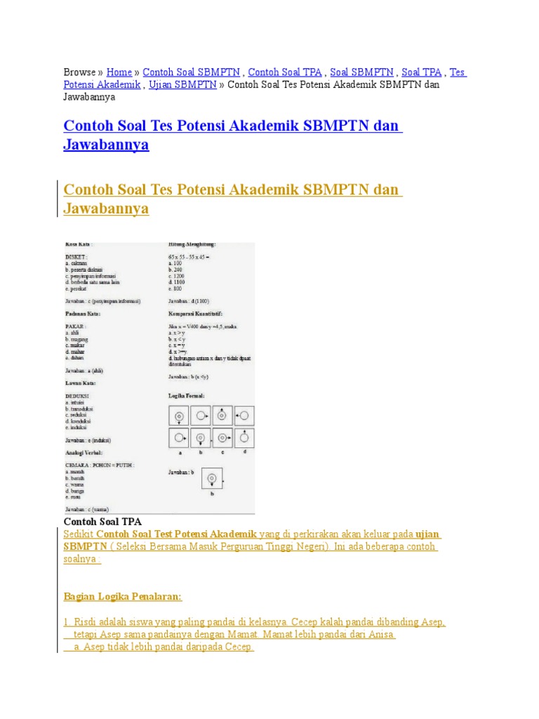 9 Contoh Soal Tpa Sbmptn Dan Kunci Jawaban
