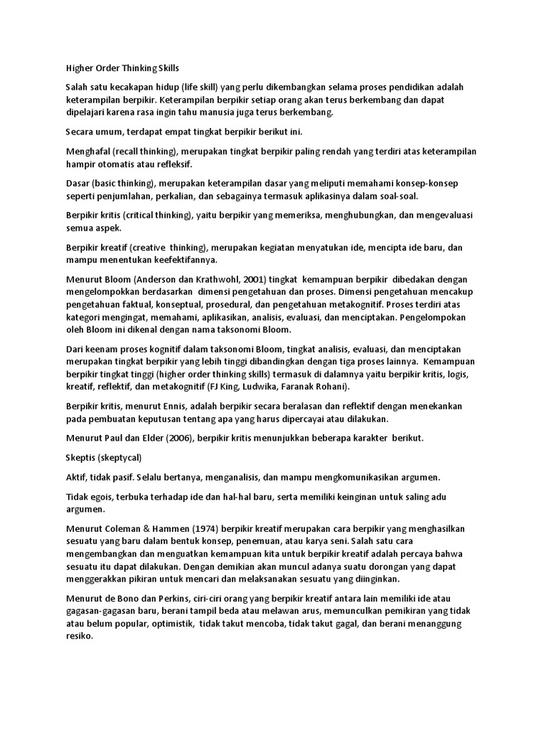 Berpikir Tingkat Tinggi Hots Dalam Pembelajaran