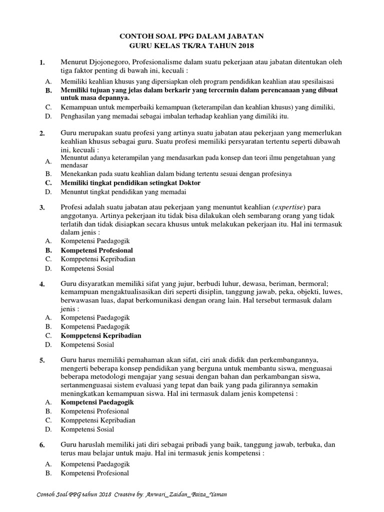 2 Contoh Soal Ppg Guru Tk Tahun 2018 Docx
